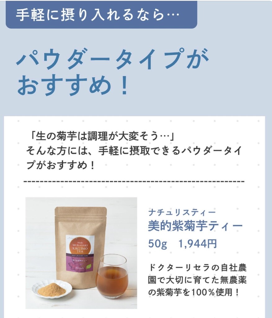 100%紫菊芋でできたパウダー状のお茶。
